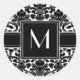 Adesivo Redondo Monograma com Damask Preto e Branco