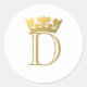 Coroa Monograma Clássica Adesivo Redondo de Suposta Folha Dourada. O design circular torna-o perfeito como um selo de envelope.