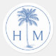 Estes adesivos inspirados na costa moderna apresentam uma palmeira azul, uma palmeira, em branco, com um monograma que você pode personalizar com sua escolha de iniciais.