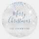 Um fundo com aspecto fino prateado, decorado com pó azul e cinza-prateado sujo. Personalize e adicione seu nome familiar. O texto: Feliz Natal é escrito com um moderno estilo escrito à mão, letras. Texto azul.