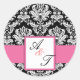 Adesivo Redondo Monograma Damask Seal de Casamento Rosa