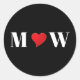 Sinais personalizados de casal, de coração vermelho, bonitos, monogramas, palhetas redondas clássicas. Iniciais brancas personalizadas, coração vermelho, fundo preto. Funciona como um selo de envelope, etiqueta de presente para favores e presentes para Dias de os namorados, aniversários, casamentos, noivados, etc. Consulte o resto da coleção para ver os itens de coordenação correspondentes.