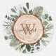 Traga a beleza da natureza para casa com nosso Adesivo Redondo Clássico Monograma de Aguarela Fatia de Madeira Rústica e Folhagem. Um toque de charme campestre e elegância florestal para o seu estilo! Adicione o inicial do nome da sua família e faça dele seu