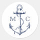 Adesivo Redondo Monograma de Âncora Azul Marinho Náutico