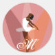personalize o adesivo com uma dançarina balé preta, inicial, bonita, vestida curta branca e uma brincadeira branca redonda, e ela dança sob luzes rosa