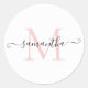 Adesivo Redondo Monograma de Bolinhas Branca e Rosa Girly