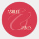 Adesivo Redondo Monograma de Casamento de Ampersand Vermelho Branc