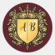 Invólucro Dourado de crosta de casamento - adicione a inicial do casal. Perfeito para o seu casamento, personalize um escudo pessoal e elegante de crosta com as iniciais dos dois. Um emblema de ornamentado na moda em folhas adesivas de 20, disponível em tamanhos, cores e formas diferentes. Estes adesivos são versáteis e podem ser usados em convites e correspondência de casamento, favores de presentes e embalagem. O ouro sobre burgundy dá uma sensação luxuosa. Um elemento de captura de olhos, uma etiqueta para o seu papel de carta de casamento. Dará um toque pessoal e elegante e elevará qualquer correspondência e embrulho. Fácil de personalizar para qualquer carta.