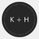 Design de adesivo de casamento preto e branco moderno que pode ser personalizado com suas iniciais.