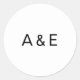 Adesivos de casamento simples e elegantes com o monograma das suas duas iniciais com um e comercial no meio, em uma fonte preta sem serifa, sobre um fundo branco. Um design básico e simples que é perfeito para um estilo minimalista. Esses adesivos chiques e elegantes são ótimos para selar envelopes.