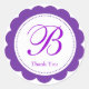 Este design versátil é perfeito como um adesivo de favor, selo de envelope e muito mais. Este design apresenta um círculo roxo e branco com um monograma de solteiro e obrigado no centro. Sinta-se à vontade para entrar em contato comigo através do recurso de mensagem se precisar de assistência com este design ou se quiser adicionar outra personalização. Ou contacte-me por correio eletrônico em zazzlestores@yahoo.com.