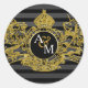 Adesivo Redondo Monograma de Emblem Regual de Leão Dourado Negro