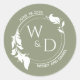 Adesivo Redondo Monograma de Folhagem Verde de Duplo Anel Elegante