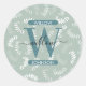 Adesivo Redondo Monograma de Folhas Botânicas Verdes Teais
