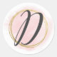 Adesivo Redondo Monograma de letra D Rosa Bege Aquarela Dourado Ch