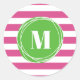 Adesivo Redondo Monograma De Listras Verdes E Rosa Modernos