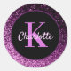Adesivo Redondo Monograma de luxo com brilho roxo de aniversário