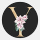 Adesivo Redondo Monograma de magnólia floral em letra Y dourada