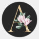 Adesivo Redondo Monograma de magnólia floral em ouro