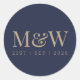Adesivo Redondo Monograma de Noivas Douradas Azul do Marinho Moder