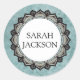 Monograma de nome floral decorativo estilizado em um fundo azul cinza padrão. Elegante e decorativo. Tons profundos e ricos. Este adesivo é ótimo como ex-libris ou apenas para etiquetar seu laptop. Personalize com seu nome ou iniciais e clique em personalizar para redimensionar suas letras, se necessário.