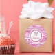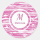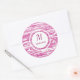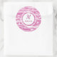 Adesivo Redondo Monograma de Padrão Branco Rosa Moderno Personaliz