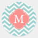 Adesivo Redondo Monograma de Padrão de Casa de Moeda e Coral
