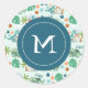 Adesivo Redondo Monograma de Padrão de Dinossauro Gelado