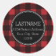 Adesivo Redondo Monograma de Padrão de Xadrez de Buffalo Vermelho