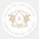 Monograma Dourado e Branco Clássico de Luxo Obrigado Por Vir O Adesivo Redondo