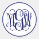 Adesivo Redondo Monograma de Script de Vinha Azul de Marinho Branc