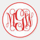 Adesivo Redondo Monograma de Script de Vinha Vermelha Branca, DIY