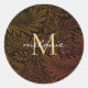 Adesivo Redondo Monograma de Script Floral Dourado Laranja Elegant