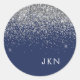 Adesivo Redondo Monograma de Sparkle Azul Girly Marinho de Prata