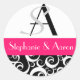 Adesivo Redondo Monograma do casamento tema damasco em preto e ros