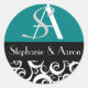 Adesivo Redondo Monograma do casamento tema damasco em Preto e Tea