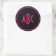 Adesivo Redondo Monograma do Círculo Negro e Rosa Brilhante