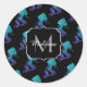 Adesivo Redondo Monograma do Mermaid aqua blue ombre Sparkles