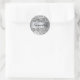 Crie seu próprio adesivo redondo clássico com cinza falso e elegante, brilho no estilo crocante confetti, emparelhado com uma fina fita metálica esfregada prateada, falso, para o monograma. O monograma preto-branco e o nome próprio apresentam um roteiro de caligrafia moderno que pode ser personalizado. Certas letras precisarão ser movidas para o centro com esta bela caligrafia. A banda e a reluzente do falso filme de luxo são imagens digitalmente criadas que impressão gostam de uma foto.