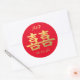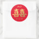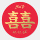 Personalize este símbolo de felicidade dupla com iniciais, data e cor de fundo (a amostra é vermelha). O símbolo do estilo caligráfico está em ouro. Versão preta também disponível na minha loja. Pode também limpar o texto se preferir um adesivo de vazio.