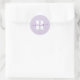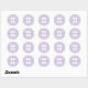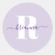 Adesivo circular minimalista clássico com monograma. Personalize o estilo de fonte em negrito conforme necessário. Se você mudar a cor roxa real do script elegante de assinatura com pontos, verifique duas vezes se a sombra é a cor desejada. Você pode aumentar o tamanho de ambas as fontes se quiser que o monograma ocupe uma parte maior da área do impressão do adesivo. Você pode personalizar a cor de fundo púrpura clara.
