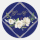 Adesivo Redondo Monograma Dourado Floral Azul Elegante Boho