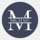 Adesivo Redondo Monograma e Nome Azul do Marinho Elegante Personal