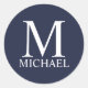 Adesivo Redondo Monograma e Nome Personalizados Azul-marinho
