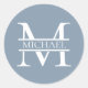 Adesivo Redondo Monograma e nome personalizados Elegante azul empo