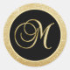 Etiquetas de focas/etiquetas lindas para os seus favores, envelopes, cartões de agradecimento, etc. Letra inicial monograma "M" em desenho de ouro único. Brilho Dourado e preto. Toda a fonte, cor e tamanho do texto podem ser alterados. Veja mais em MONOGRAMMED STICKERS/SEALS. Contate o designer para obter outras letras monográficas ou cores de fundo.