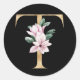 Adesivo Redondo Monograma floral de magnólia em ouro T