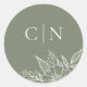 Adesivo Redondo Monograma Floral Elegante Iniciais Sage Wedding