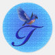 Letra monográfica elegante T com um adesivo ou etiqueta bonito de pássaro azul. Clique em Personalizar para adicionar qualquer texto que você queira personalizar este item. ideia de presente de excelente! Visite os Monogramas de Olhos Sorridentes para ver mais cartões e presentes florais, naturais e de arte digital.