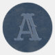 Adesivo Redondo Monograma inicial de textura do couro azul russo